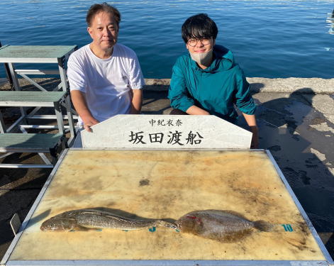 マゴチ52cm 1匹 ガンゾウヒラメ36.5㎏ 1匹 活けアジ飲ませ釣り |