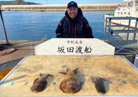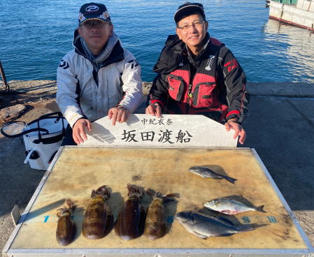 アオリイカ0.3~1.255㎏ 4ハイ 活けアジヤエン釣り |