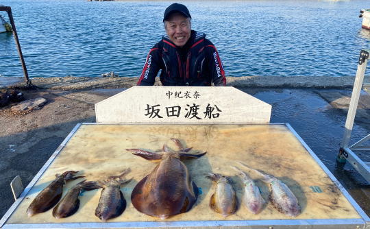マダイ37~48.5cm 3匹 チダイ29.5cm1匹 アオリイカ0.44~0.63㎏ 2ハイ メジロ62.5cm 1匹 イトヒキアジ26cm 1匹 丸ハゲ17cm前後 4匹 カゴ釣り&ヤエン&飲ませ釣り |