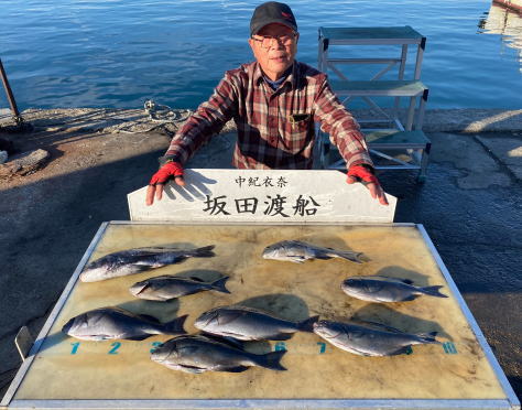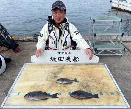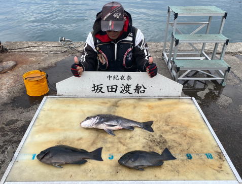 チヌ38~40.5cm 2匹 マダイ49cm 1匹 丸ハゲ25cm 1匹 |
