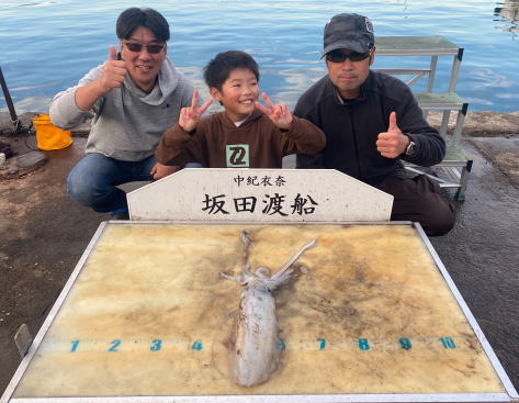 アオリイカ0.88~1.46㎏ 2ハイ モンゴウイカ1.015㎏ 1㎏ 1ハイ エギング |