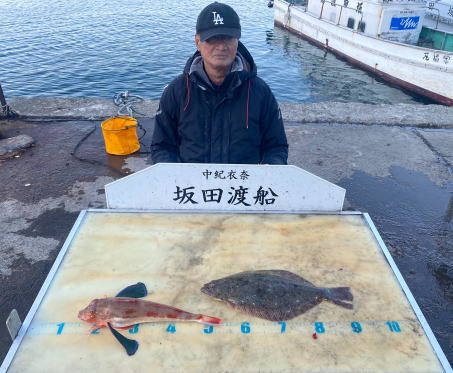 ヒラメ45cm 1匹 ホウボウ40cm 1匹 活けアジ飲ませ釣り |