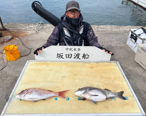 チヌ45.5cm 1匹 マダイ46.5cm 1匹 フカセ釣り |